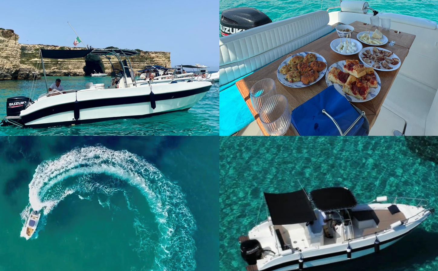 Partite alla scoperta delle meraviglie della costa salentina con escursioni in barca personalizzate. Potrete esplorare calette nascoste e spiagge bianche, vivrete così momenti di serenità e avventura in mezzo al blu profondo del mare. Ogni escursione è una nuova scoperta, con opportunità di nuotare in acque cristalline o ammirare panorami mozzafiato, sempre guidati da skipper esperti che conoscono ogni segreto del litorale.