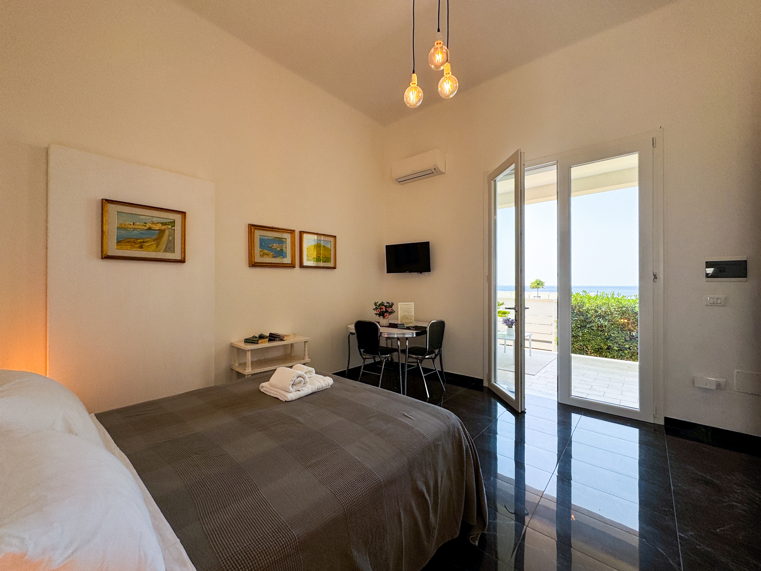 E composta da 3 camere da letto impreziosite da ampie vetrate con vista mare tutte dotate di ingresso indipendente tramite ampia veranda a piano. Questo permette ad ogni ospite di accedere all'interno della struttura, senza dover disturbare gli ospiti già presenti o peggio ancora dover passare da altre zone notte.