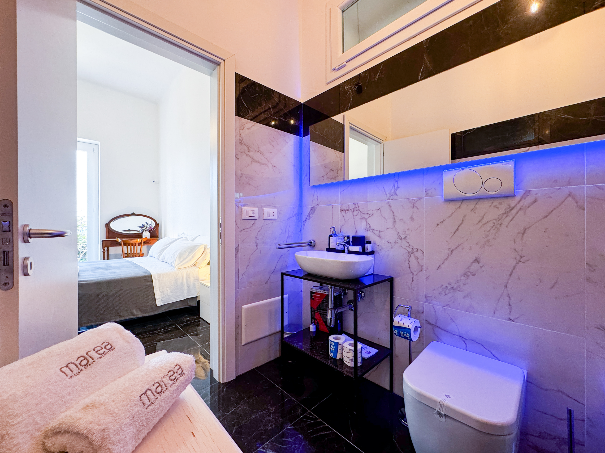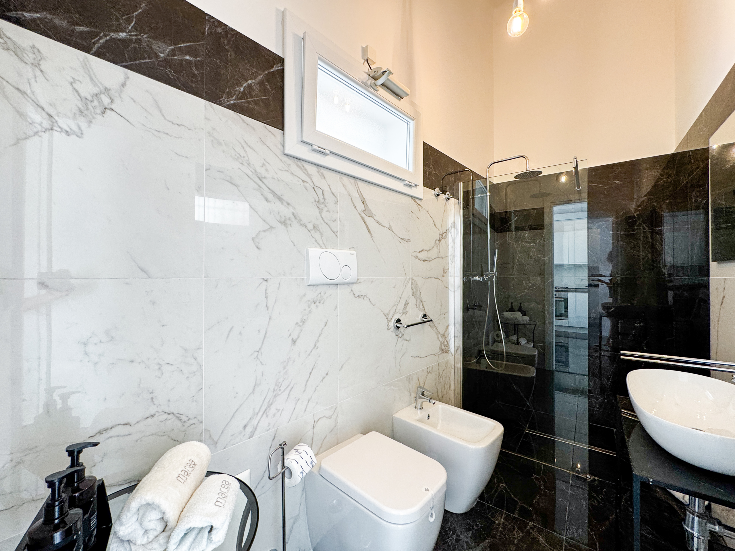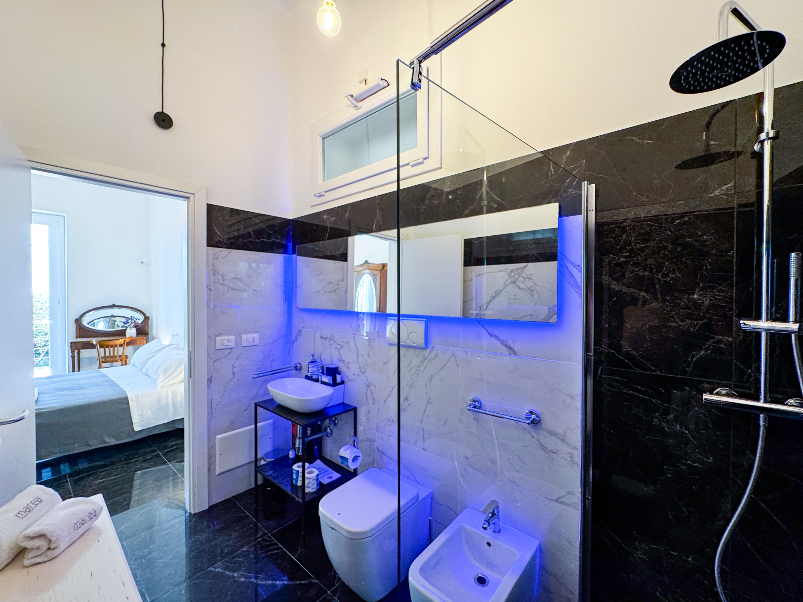 Tutte le camere sono servite da bagni grandi e completi di doccia, wc e bidet.